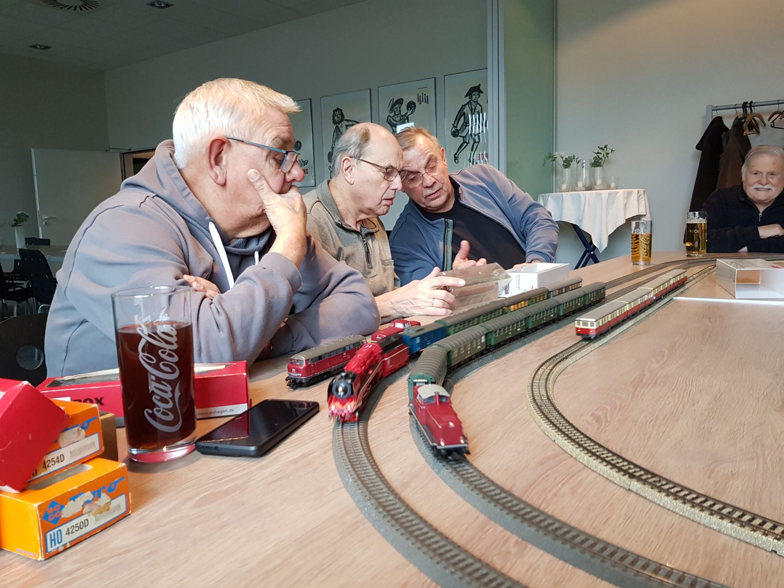 Beim heutigen Stammtisch waren wir zu elft. Es wurde viel geplaudert, und alte wie neue Zugmodelle drehten ihre Runden. Wir hatten jede Menge Spaß und zum Abschluss gab es wieder ein gemeinsames Essen. Schaut euch die Bilder an, und wer mal vorbeischauen möchte, ist herzlich eingeladen.